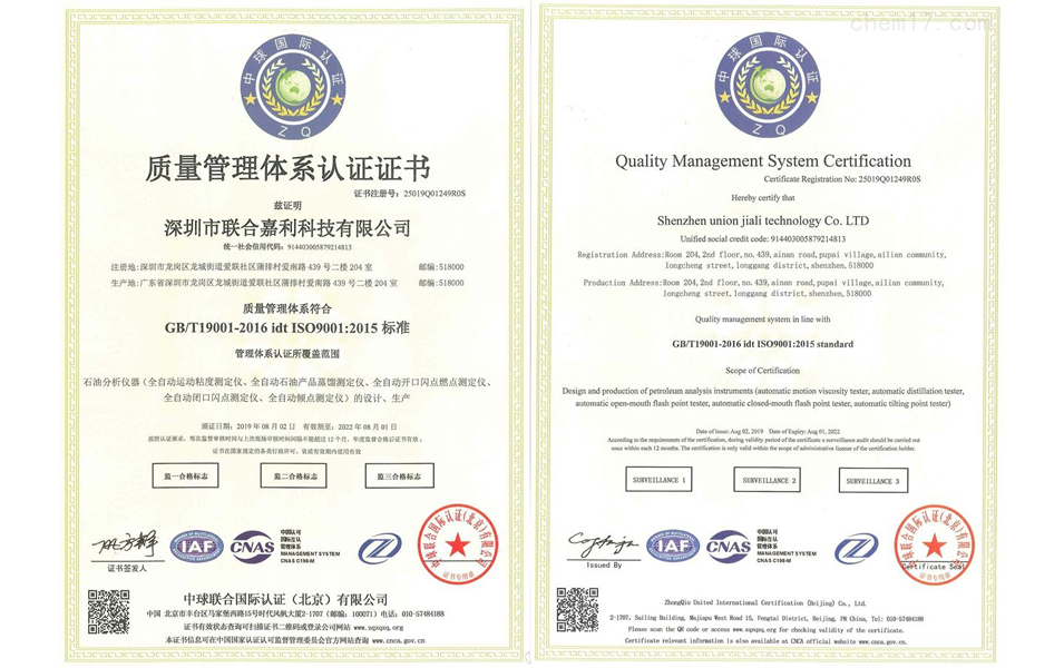 深圳市聯(lián)合嘉利科技有限公司集研發(fā)、生產(chǎn)和銷售為一體的高新技術(shù)企業(yè)。專業(yè)從事石油及石油產(chǎn)品的檢測和油品分析儀器的研發(fā)生產(chǎn),...